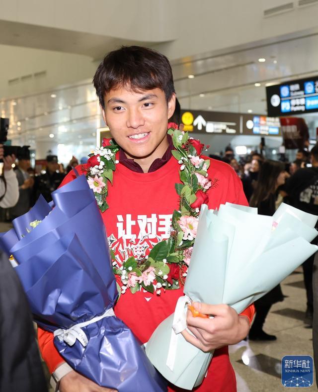 ↑中国队球员李昊抵达北京大兴国际机场。新华社记者李明摄