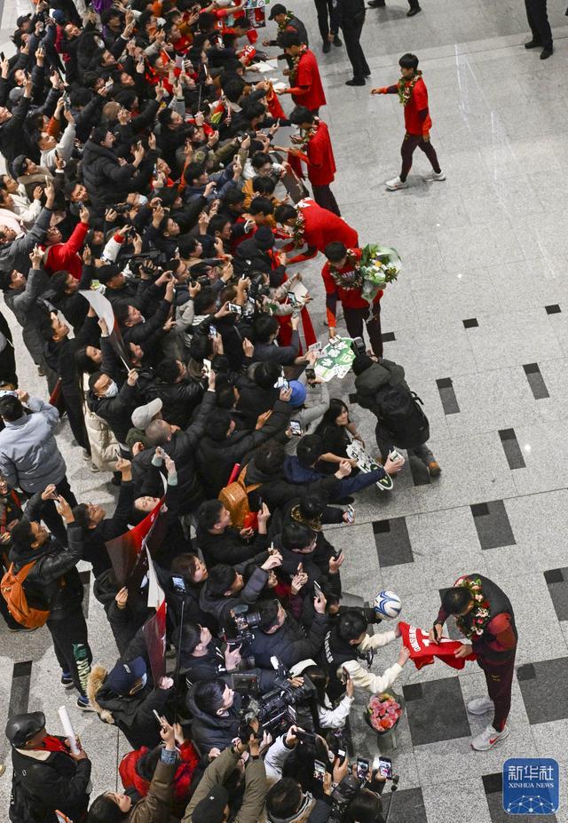 ↑球迷在机场欢迎中国队归来。新华社记者谢晗摄